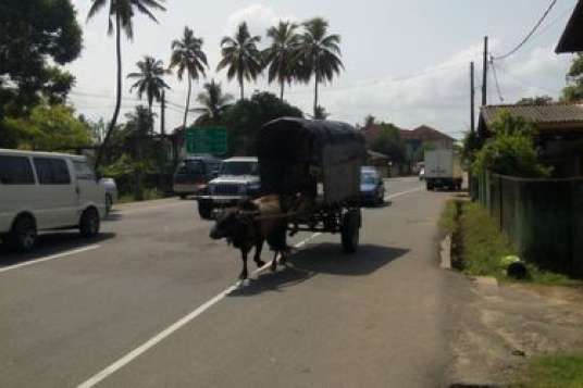 Но начнем, пожалуй, с движения. Оно здесь без светофоров, правил, да еще и левостороннее. И сигналят все. Поворотниками тут пользуются только ночью, да и то редко. Поэтому, нажимая на клаксон, ланкиец говорит: "Маневр!", и начинает обгонять или поворачивать. На тук-туке (трехколесный крытый моторикша, их больше, чем пальм), мотоцикле (основной транспорт даже для белых воротничков), автомобиле, грузовике и... рейсовом автобусе. Причем водители последних, как самых крупных, бесчинствуют больше всех — нередко встречаются случаи, когда на двухполосной дороге (а шире здесь встречаются редко, да и то — платные) пытаются разминуться сразу три автобуса, наплевав на встречку, обочину и случайно затесавшихся между ними других участников движения. В нашу машину автобус врезался, чуть столкнул с дороги и поехал дальше. Водитель даже не почесался. Местная газета ежедневно пишет о том, что автобус кого-то сбил. Из-за подобного "стиля" движения скорость на дороге — не более 50 км/час. Так что не удивляйтесь, если сотню километров вы будете ехать часа три.