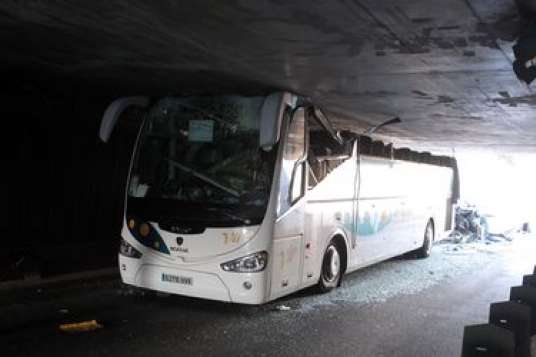 Автобус оказался выше (его высота 3,65 м), чем перекрытия туннеля (ограничение — 2,6 м), и в результате транспорт лишился крыши.