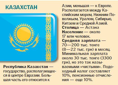 ЗАРПЛАТА И РАБОТА. Казахи считают, что зарплата у них невысокая. Так, в столице Астане она в среднем составляет 70—200 тыс. тенге (8—22 тыс. грн) в месяц. В Павлодаре ниже: 50—130 тыс. тенге (5500—14 500 грн). Но, например, у работников почты может быть всего 30 тыс. тенге (3300 грн), но это так называемыми "чистыми". Подоходный налог составляет 10%, еще 10% — пенсионные отчисления. Тут очень дорожат семейными узами и на работу скорее возьмут родственника. Поэтому "продвинутые" бизнесмены опытных специалистов приглашают из других стран, чтобы кумовства было поменьше. В плане пенсии на государственную поддержку тут не особо рассчитывают, надеются на себя и близких. Минимальная пенсия — около 23 тыс. тенге (2500 грн). Очень часто несколько поколений живут под одной крышей — сильны культурные традиции, а к тому же дешевле и удобнее. Старость у казахов в почете: старикам отдают самые лакомые кусочки и лучшее место в доме. Зачастую люди в возрасте ведут "кочевой" образ жизни — гостят по нескольку месяцев у детей в разных концах страны. А те, в свою очередь, стараются перещеголять друг друга в том, кто окажет им лучшее уважение и почет.