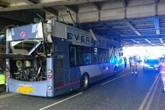 Двухэтажный пассажирский автобус врезался в мост в Рочдейле под Манчестером. В результате инцидента даблдекер остался без крыши и части верхней палубы. 12 человек госпитализированы.