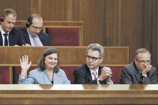 Послы. Виктория Нуланд, Джеффри Пайетт и Ян Томбинский вчера лично присутствовали под куполом. Фото УНИАН