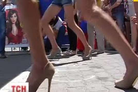 У Львові майже півтори сотні дівчат бігли стометрівку на високих підборах. Головна умова участі у кросі - підбори мінімум дев’ять сантиметрів. Приз – подорож до Нью-Йорку. Перед початком забігу його учасниці приклеювали взуття скетчем, а організатори перевіряли висоту підборів. До фінішу дістались не усі, дівчата губили туфлі і падали. Випуск ТСН.19:30 за 4 липня 2015 року